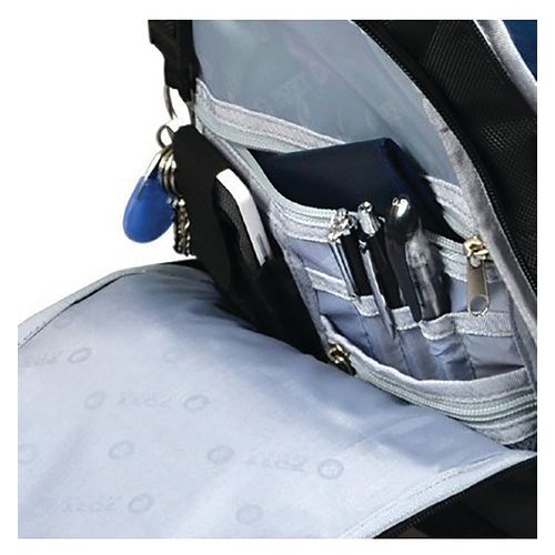 - Inkluderer regnslag og skjult RFID-beskyttet baglomme.