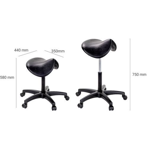 | Varenavn | Sadelstol Pony, Type af fod: Hjul, Sæde, materiale: Polyuretan, Sæde model: Høj, Stativ, materiale: Nylon |