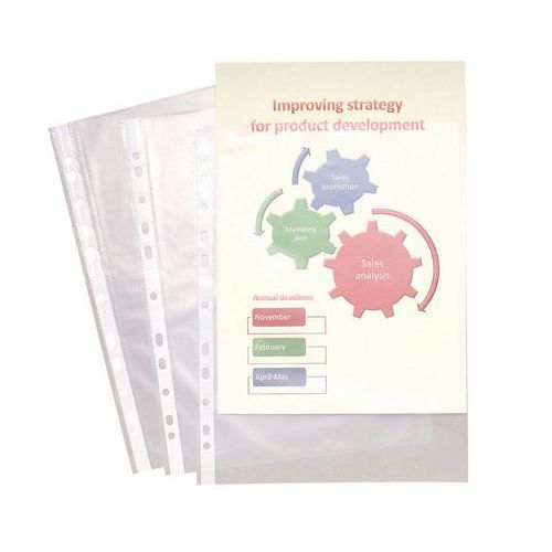 | Varenavn | Sæt med 100 plastlommer med huller, nopret PP, Farve: Transparent, Materiale: Polypropylen, Tykkelse: 0.05 mm |