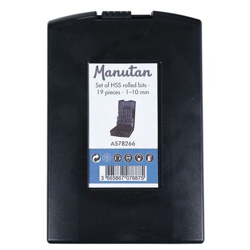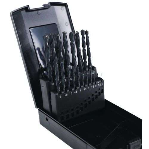 | Varenavn | Sæt med 19 stk. cylindriske rullede HSS-bor , Antal dele: 19, Anvendelse: Bore, Materiale: Stål, Antal bor: 19 |