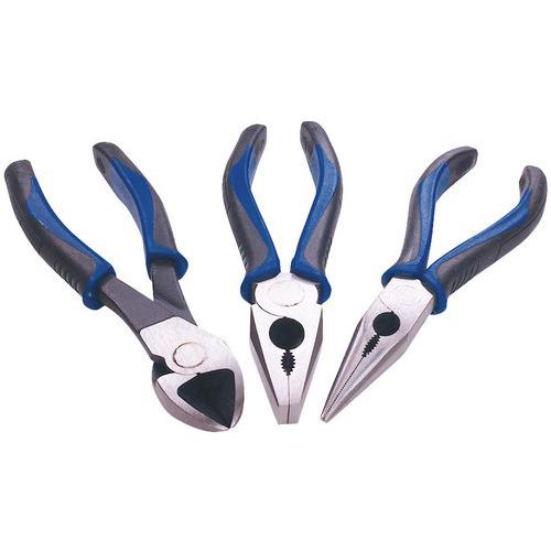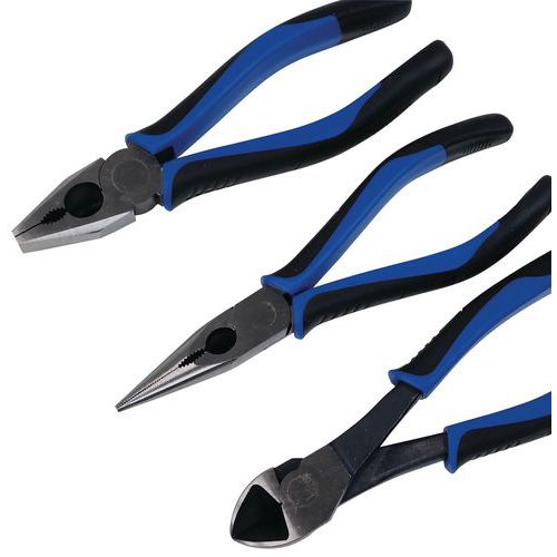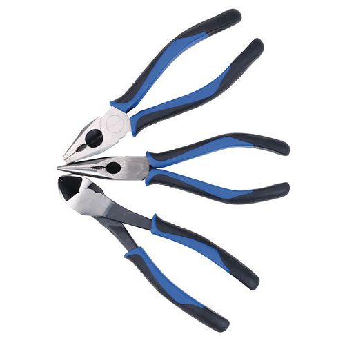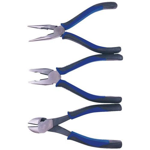 | Varenavn | Sæt med 3 tænger med greb af kompositmateriale , Antal dele: 3, Anvendelse: Lukke, Materiale: Stål |