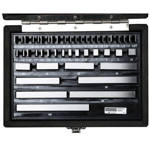 | Varenavn | Sæt med måleklodser, Type: Sæt med 47 dele, Længde: 630 mm, Bredde: 400 mm, Klasse: 2, Højde: 100 mm |