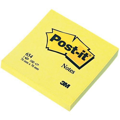 Selvklæbende blok, Antal ark/blok: 100, Farve: Gul, Længder: 76 mm, Bredde: 76 mm, Produktemballage: 12 stk.