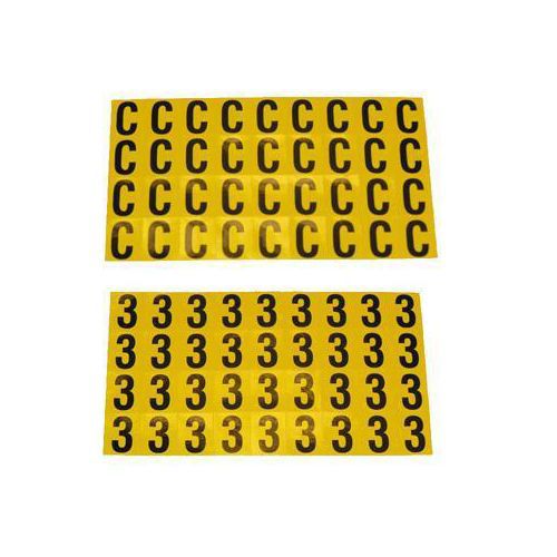 Til lager og industri. Med sorte tal eller bogstaver på gul baggrund. Fremstillet i slidstærkt vinylvæv i højeste kvalitet. Langtidsholdbar og let at fjerne. NB! Leveres i ark med samme tegn.