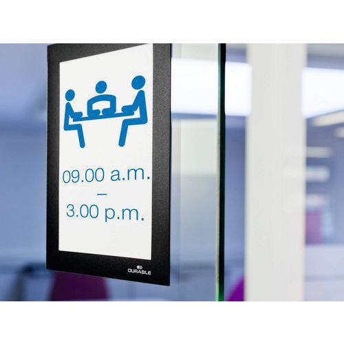Selvklæbende informationsramme til oplysninger. Magnetisk ramme på forsiden gør det nemt at udskifte...