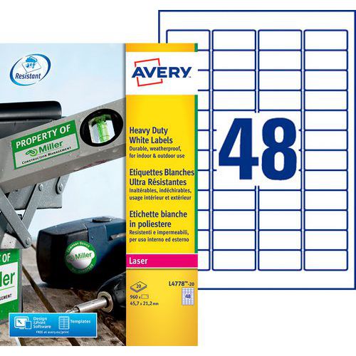 Selvklæbende ultraresistent hvid etiket - Laserprinter - Avery Selvklæbende ultraresistent hvid etiket - Laserprinter - Avery