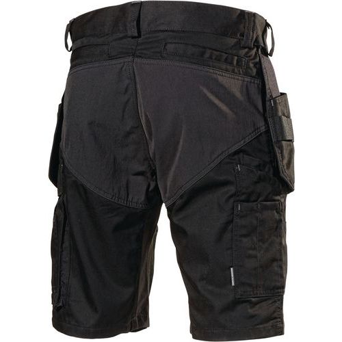 Metaldetaljerne er dækkede og godt beskyttede, hvilket forhindrer risikoen for at ridse sarte overflader. Strækstof over bagdel, front, skridt og knæenes bagside for ekstremt god bevægelighed, komfort og luftighed. Hængelommer forstærket med Cordura. Materialer og gramvægt: 65 % polyester, 35 % bomuld. 240 g/m². To aftagelige hængelommer med velcrolukning. To forlommer. Indfældede stolpelommer bagpå. Højre benlomme med tommestoklomme og blyantslomer. Benlomme med udvendig vinklet telefonlomme udstyret med magnetlås.