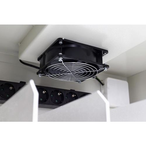 For at håndtere varmeudviklingen fra enhederne er skabene forsynet med en indbygget køleventilator.