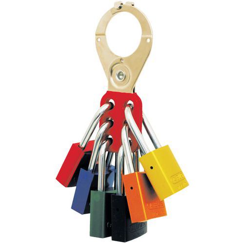 - Sakselås til tilslutning af op til 6 separate hængelåse. Ekstra sikkerhedsspærre på sakselåsens arme. Tilbehør til Hængelås Locked Out.