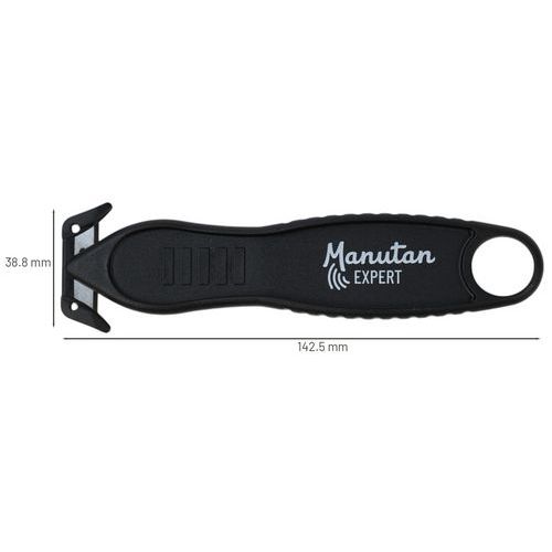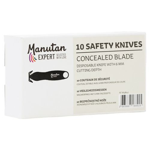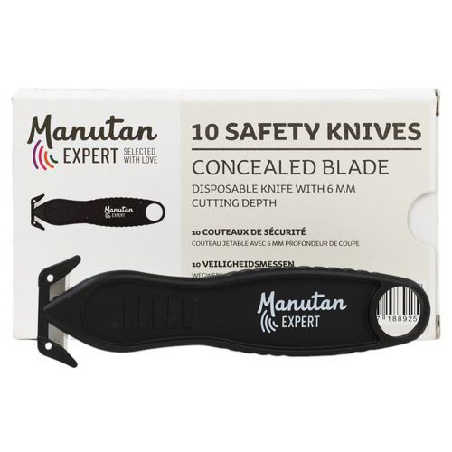| Varenavn | Sikkerhedskniv med beskyttet klinge, Indtrækkeligt blad: nej, Farve: Sort, Køkken: nej, Skæredybde: 5 mm |