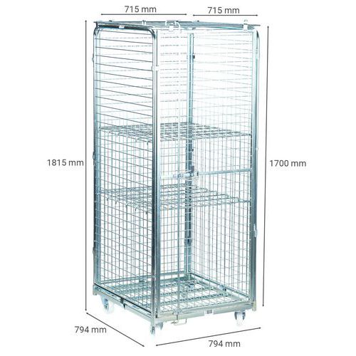 | Varenavn | Rullecontainer, Kapacitet: 400 kg, Totalhøjde: 1815 mm, Totallængde: 794 mm, Totaldybde: 794 mm |