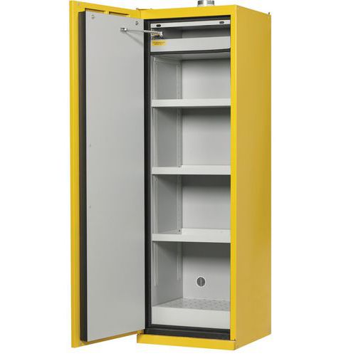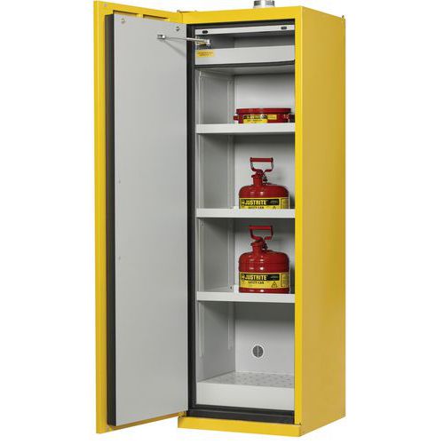 | Varenavn | Sikkerhedsskab til opbevaring af brandfarlige produkter – Justrite, Totalhøjde: 207 cm, Totalbredde: 60 cm |