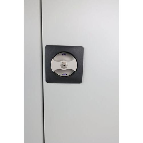 Lås dit skab med den integrerede cylinderlås i håndtaget og den strømlinede, tredelte paskvillås.
