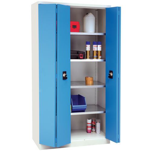 | Varenavn | Skab foldedør højt, Maksimal last: 500 kg, Materiale: Stål, Totalhøjde: 1950 mm, Totalbredde: 1000 mm |