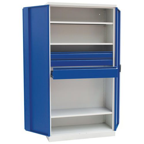 | Varenavn | Skab Magic højt, Maksimal last: 250 kg, Materiale: Stål, Totalhøjde: 1950 mm, Antal skuffer: 3 |