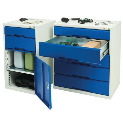 Skuffer monteret på rulleskinner, der kan modstå en belastning på 60 kg.