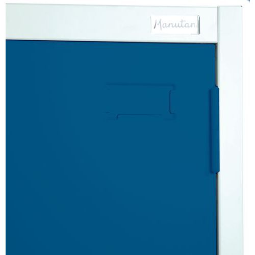- Lysegrå ramme i RAL 7035 med epoxy-finish. Blå døre i RAL 5009. Komplet monteringsvejledning er inkluderet i dette flade sæt.