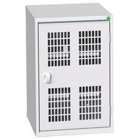 Svejset stålpladekonstruktion. Forstærkede døre med 3-punkts lås. Ventilerede døre for god ventilation og overblik over indholdet. Hylder i galvaniseret stål, justerbare i trin af 25 mm. Belastningsevne pr. hylde 60 kg. Sikkerhedsråd: - installer møblet på en plan overflade - fastgør det til en væg eller skillevæg med egnede beslag - sørg for ikke at overskride den maksimalt anbefalede belastning, og sørg for, at den er godt fordelt. Lavet i UK Maksimal last (kg) : 1000 Maksimal vægt pr. hylde (kg) : 75