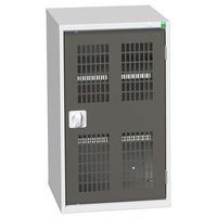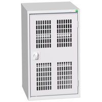 Svejset stålpladekonstruktion. Forstærkede døre med 3-punkts lås. Ventilerede døre for god ventilation og overblik over indholdet. Hylder i galvaniseret stål, justerbare i trin af 25 mm. Belastningsevne pr. hylde 60 kg. Sikkerhedsråd: - installer møblet på en plan overflade - fastgør det til en væg eller skillevæg med egnede beslag - sørg for ikke at overskride den maksimalt anbefalede belastning, og sørg for, at den er godt fordelt. Lavet i UK Maksimal last (kg) : 1000 Maksimal vægt pr. hylde (kg) : 75