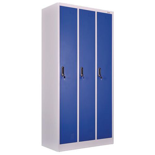 - Skab til brug i industri, hvor der genereres snavs, med separate søjler for at holde snavset tøj adskilt fra rent tøj.