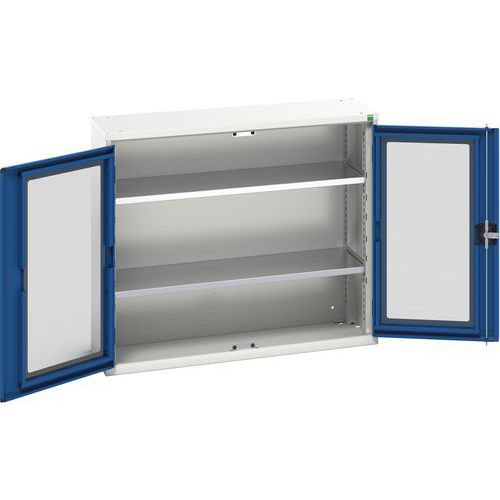 Verso skab med transparente døre. Med 2 hylder. 1050x350x900. Lavet i UK Maksimal vægt pr. hylde (kg) : 75 Maksimal last (kg) : 1000