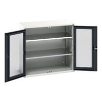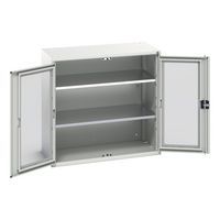 Verso skab med transparente døre. Med 2 hylder. 1050x550x1000. Fremstillet i Storbritannien Maksimal vægt pr. hylde (kg) : 75 Maksimal last (kg) : 1000