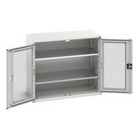 Verso skab med transparente døre. Med 2 hylder. 1050x550x900. Fremstillet i Storbritannien Maksimal vægt pr. hylde (kg) : 75 Maksimal last (kg) : 1000
