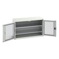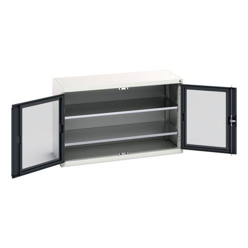 Verso skab med transparente døre. Med 2 hylder. LxBxH: 1300x550x800mm. RAL 7035.
