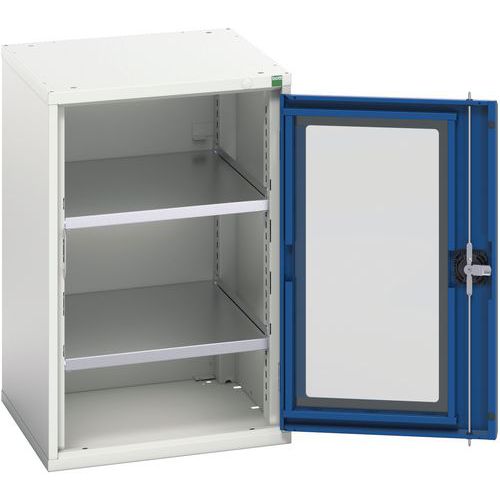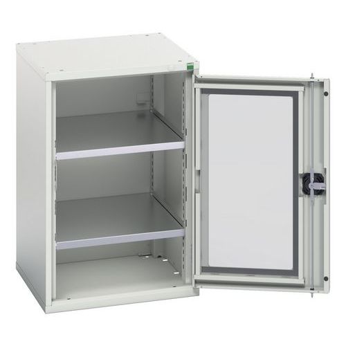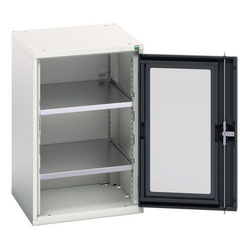 Verso skab med transparente døre. Med 2 hylder. 525x550x800. Inkluderer et sæt med 2 nøgler. Fremstillet i Storbritannien Maksimal last (kg) : 1000 Maksimal vægt pr. hylde (kg) : 75