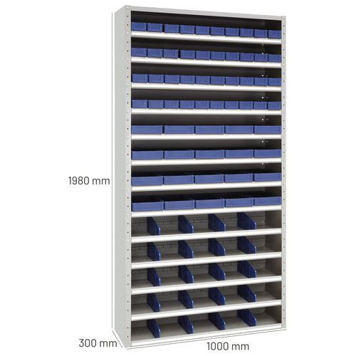 | Varenavn | Skabe med rum og skuffer 198 x 100 x 30 cm, Materiale: Stål, Totalhøjde: 1980 mm, Totalbredde: 1000 mm |