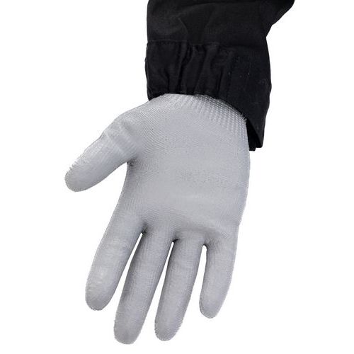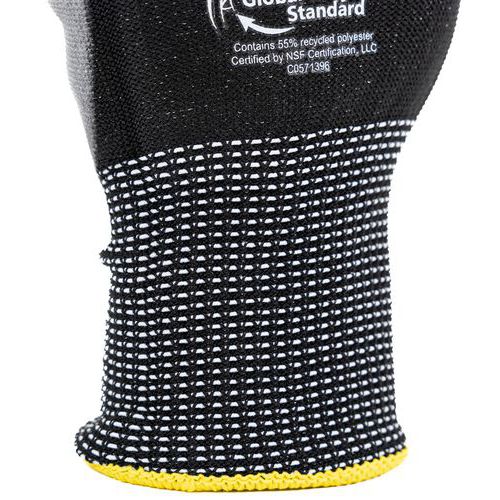 Skærefaste handsker på niveau C. Fremstillet af genanvendte plastflasker. Sømløs strikket støtte for ekstra komfort. Polyuretanbelægning på håndfladen og fingerspidserne giver fremragende slidstyrke. Kompatibel med berøringsskærme. Belægning giver mulighed for præcisionshåndtering. Strikket manchet forhindrer snavs i at trænge ind i handsken. Vaskbar for forlænget levetid og mindre omkostninger til udskiftning. Strikkefasthed 13.
