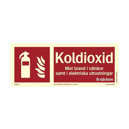 | Varenavn | Skilt Supernova+® kulsyreslukker, Materiale: Aluminium, Skilt, form: Kvadrant, Type skilt: Brandsikkerhed |