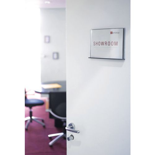1 plade, 3 monteringsbeslag: til opstilling, på væg og som flag.