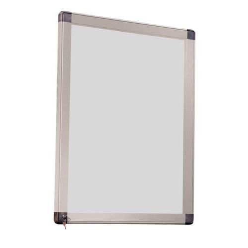 - Skilteskab med profiler i lakeret polyester med vindue af plexiglas samt hjørner i polykarbonat.
