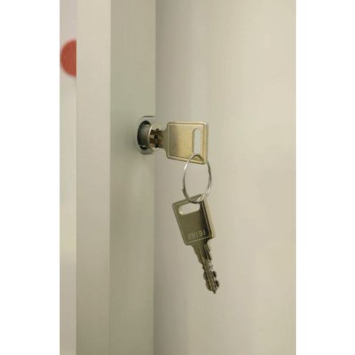 Ramme i natureloxeret aluminium med rundede hjørner i ABS-plast. Dør med 3 mm plexiglas. Kork eller whiteboard (hvidemaljeret stålbund). Skruesæt til ophæng medfølger.
