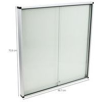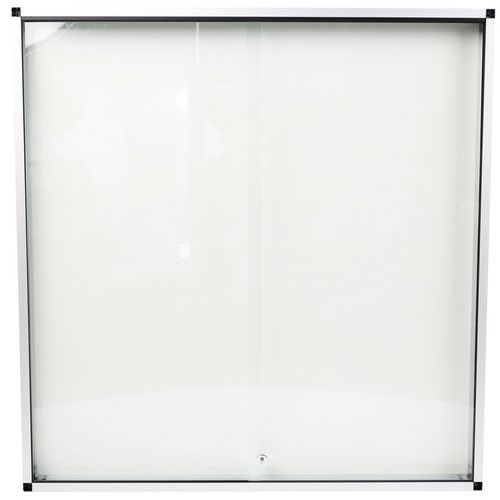 Låsbart skilteskab med magnetbund til vægmontering. Indvendigt skilteskab med 2 døre. Robust, sikkert og let design. Magnetisk overflade i lakeret stål. Akrylskærm viser tydeligt det udstillede materiale. Ramme i aluminium. 100 % genvundet og genvindelig. Leveres med 2 nøgler.