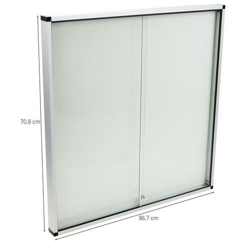 Låsbart skilteskab med magnetbund til vægmontering. Indvendigt skilteskab med 2 døre. Robust, sikkert og let design. Magnetisk overflade i lakeret stål. Akrylskærm viser tydeligt det udstillede materiale. Ramme i aluminium. 100 % genvundet og genvindelig. Leveres med 2 nøgler. Fremstillet i EU Garanti : 10 år