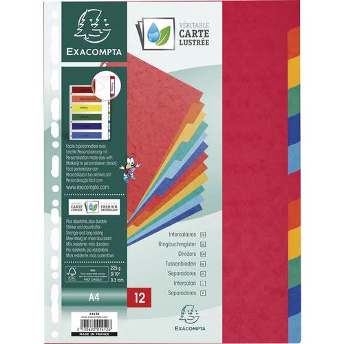 Skinnende register med neutrale faner, 225 g/m² - Exacompta