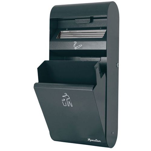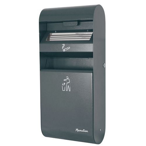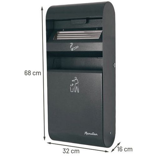 | Varenavn | Skraldespand med askebæger væg 14 + 3 l, Askebæger, volumen: 3 L, Farve: Mørkegrå, Materialer: Stål |