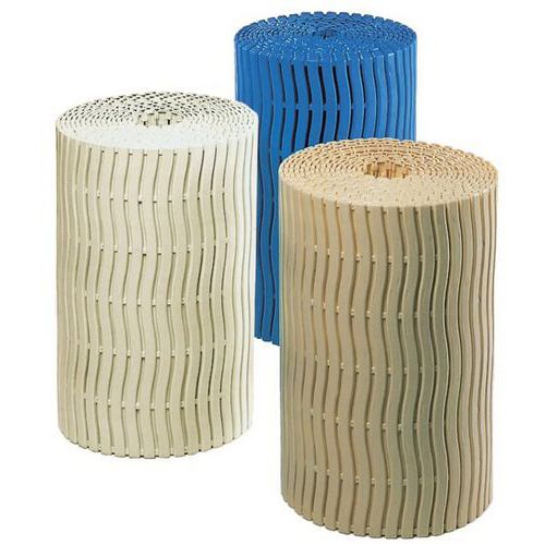 Skridsikker rist Soft-Step™ – bredde 60 – hvid – Notrax. Ergonomisk, aflastende og skridsikker rist, hygiejnisk. Sund og sikker i våde rum (bruser, swimmingpool ...), UV-bestandig, behagelig, antibakterielt behandlet polyætylen. Åben struktur, der letter vandafledning. Nem at rengøre, lav vedligeholdelse. Bølget mønsterdesign i antibakterielt polyethylen. Forhindrer spredning af svampe og bakterier. UV-bestandig.