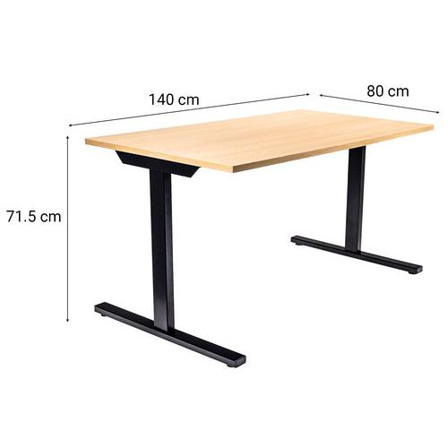 Rektangulært skrivebord 140x80 cm med T-formede ben. Klassisk design – fås i flere forskellige farvekombinationer, der passer ind i alle typer kontorer/miljøer. Melaminbordpladen er 25 mm tyk med en 2 mm ABS-kant. Metalben: 796x60x30 mm.
