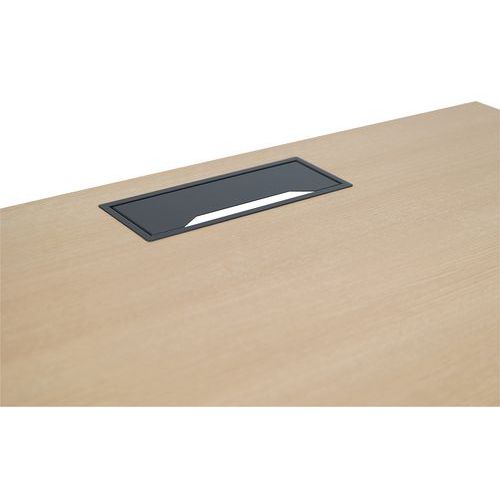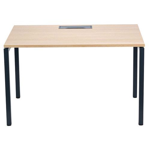 Lige bord med 25 mm melaminbordplade og 2 mm ABS-kant. To bærende tværdragere af 4x2-mm metalrør. Lige metalben, 4x4 mm, med plastfødder til nivellering. Bordpladen leveres med et ledningsstyresystem med klap.
