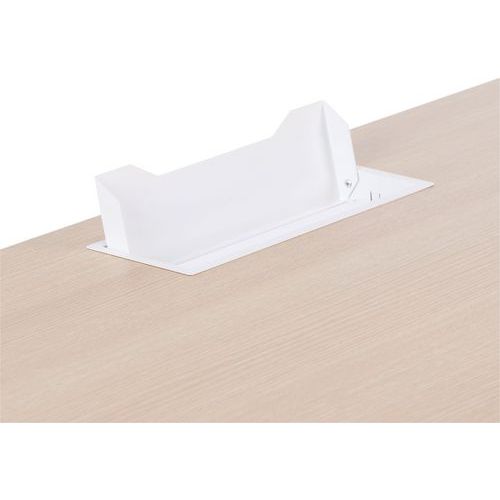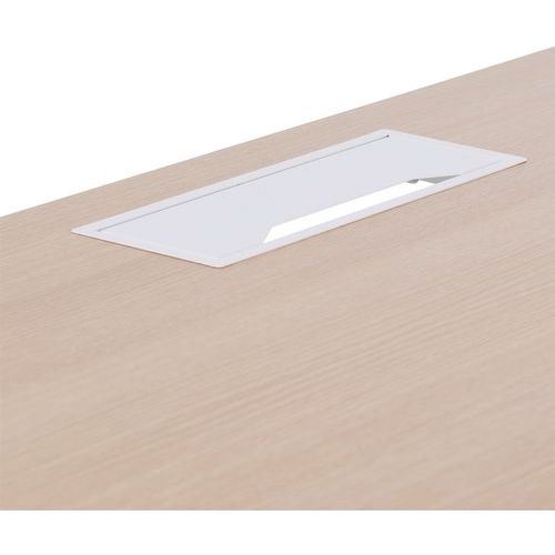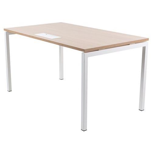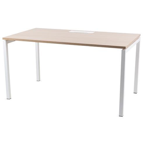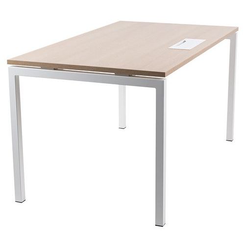 Lige bord med 25 mm melaminbordplade og 2 mm ABS-kant. To bærende tværdragere af 4x2-mm metalrør. Lige metalben, 4x4 mm, med plastfødder til nivellering. Bordpladen leveres med et ledningsstyresystem med klap.