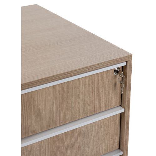 Praktisk kontornederdel i klassisk design, med tre skuffer. Låsbar, så du altid har dine ting i sikker opbevaring. Maksimal belastning pr. kasse 25 kg. 37 mm drejelige hjul. Maksimal belastning for hver skuffe: 25 kg. Drejelige hjul med en diameter på 37 mm. Fremstillet i EU Garanti : 10 år
