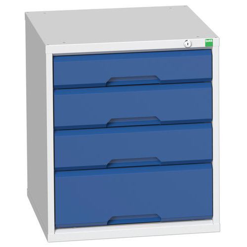 Toppen hviler direkte på et ben og en skuffe. Skufferne er 525 eller 800 mm brede. Skuffer og låger er låste. Skuffer monteret på kuglelejer. Skuffeinddelere som ekstraudstyr. Fremstillet i Storbritannien