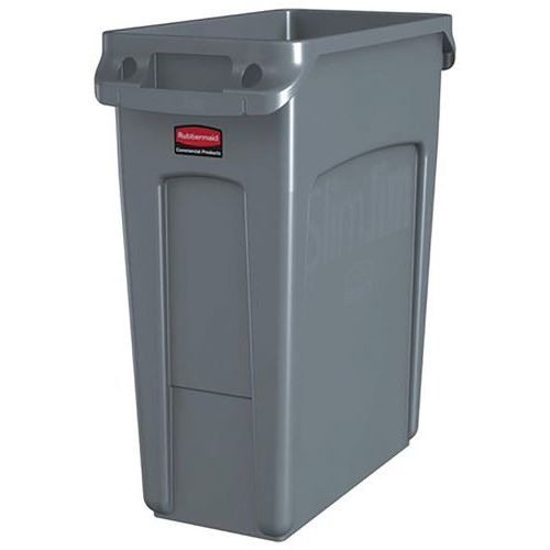 | Varenavn | Slim Jim®-container m/udluftningskanaler – Grå – 60 l – Rubbermaid, Volumen: 60 L, Åbning: Ingen dækning |