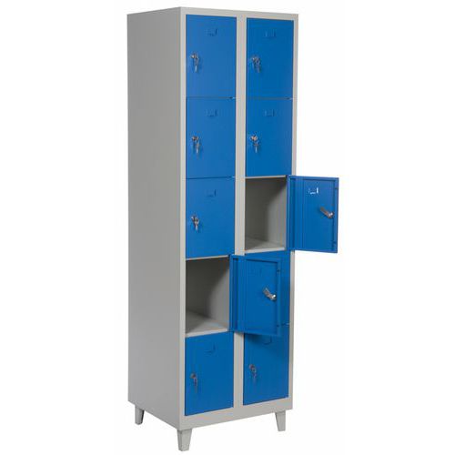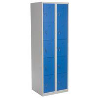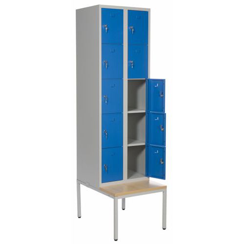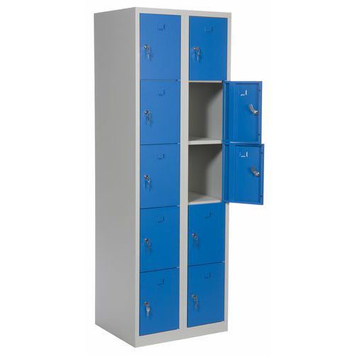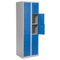 Et fleksibelt småfagskab i dobbeltkonfiguration med 4-10 rum, perfekt til opbevaring af personlige ejendele på arbejdspladser, skoler, kontorer, butikker, idrætsanlæg, hospitaler, ventehaller med mere.