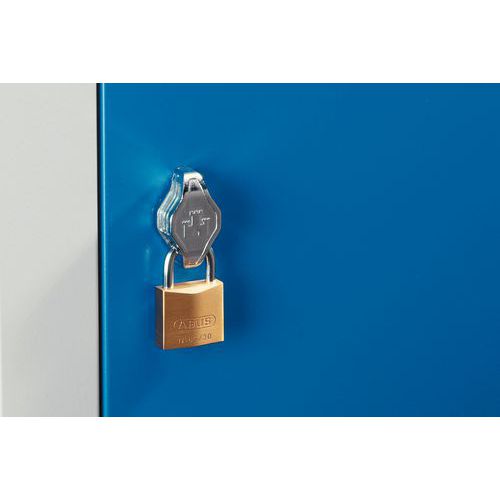 Låger, som er forstærket med usynlige hængsler. Ventilation foroven og forneden på forsiden. Huller til vægmontering. Garderobeskab med støjdæmpende lågestop. Leveres monteret og uden lås. Bestil cylinderlås med to nøgler eller klinke til hængelås (hængelås indgår ikke). Plade, tykkelse : 7/10e Garanti : 10 år