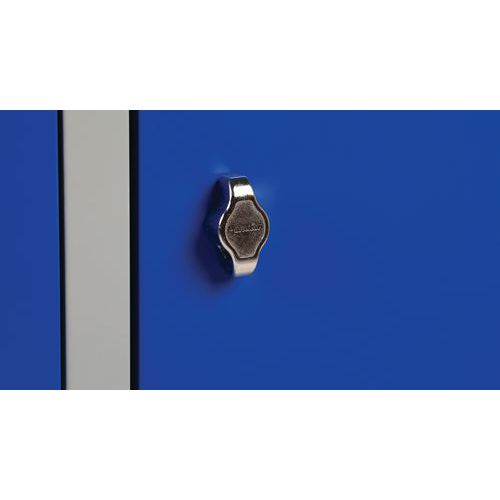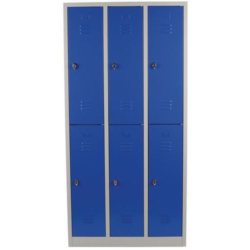 Uni med sokkel er en serie små garderobeskabe/småfagskabe, hvor man selv kan konfigurere sit skab efter, hvor mange rum man har brug for, 2 til 15 pr. skab. Skabene er udstyret med døre med usynlige hængsler, puder der dæmper lyd ved brug samt ventilation både øverst og nederst på forsiden af dørene for at holde luften i skabene frisk. Perfekt til alle slags miljøer, hvor man har brug for at opbevare alt fra tøj, tasker og andre ejendele. Småfagskab Uni har huller i bagsiden af skabene, så de kan fastgøres til væggen - perfekt for dem, der ønsker en stabil og sikker installation. Skabene leveres monteret og uden lås - vælg mellem cylinderlås med to nøgler eller klinke til hængelås samt hængelås.