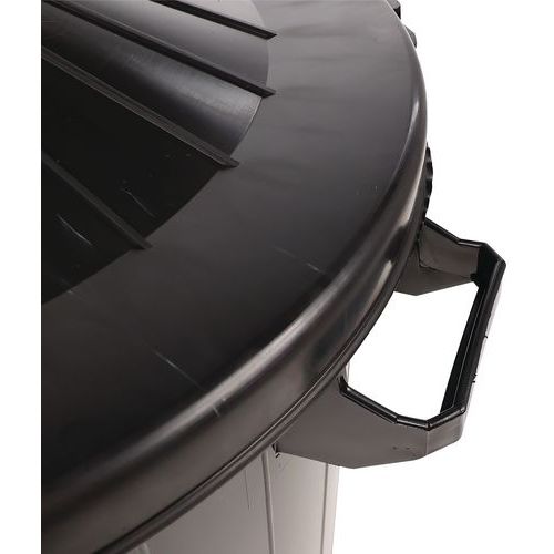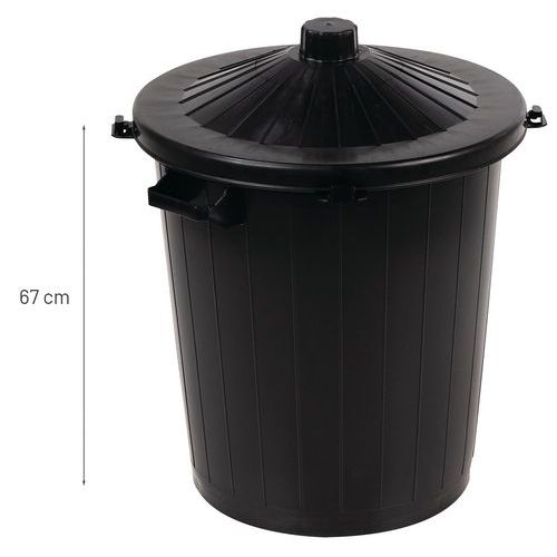 | Varenavn | Sort offentlig affaldskurv, Volumen: 80 L, Åbning: Front, Materiale: Polyethylen med høj densitet |